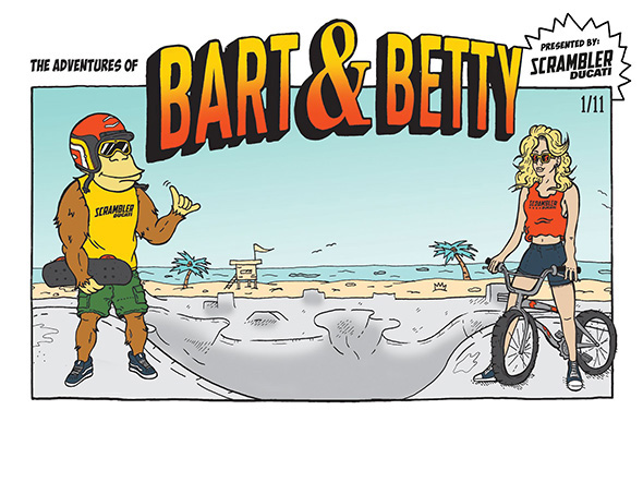 Ducati hat um die neue Scrambler ganz geschickt eine eigene Welt kreiert mit dem Namen „Land of Joy“. In diesem Land entführen uns die Italiener in die glorreichen Siebziger und Achtziger Jahre, als das Motorradfahren ein Ausdruck des Lebensstil war. Nach Franco und Elvira, den handgemachten und animierten Knetfiguren eines Stop-Motion-Videos, mit denen Ducati die ganze Geschichte letztes Jahr ins Rollen brachte, gibt es eine neue “Love Story” aus „Land of Joy“: Dieses Mal wird die Geschichte von den Skatern Bart und der wunderbaren Betty in der Form eines Comics erzählt.