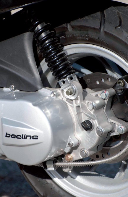 Da gibt es doch den Memory. Der fällt alleine schon wegen seines einprägsamen Namens auf. Aber auch optisch setzt der unter dem Markennamen Beeline von der österreichischen Firma Leeb vertriebene Memory 50 eine erinnerungswürdige Duftmarke. Landläufig würde man das als Vespa-Style bezeichnen, was der Retro-Scoot zur Schaustellt: runder Halogenscheinwerfer in der Lenkerverkleidung, voluminöser Kotflügel vorne, breites Heck mit dicken Seitenbacken hinten, flache Fußablage und reichlich verchromte Zierleisten mit klassisch runden Chromspiegeln. Der Look wirkt aber keineswegs aufgesetzt, sondern besitzt wegen der markanten Front mit den integrierten LED-Blinkern ausreichend Eigenständigkeit.