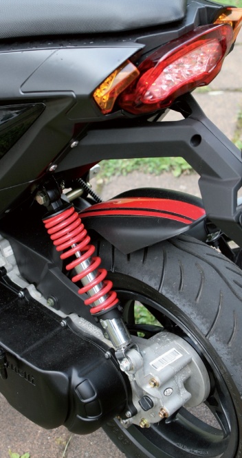 Wie Laverda, Moto Morini oder Malaguti zählt auch Benelli zu jenen klangvollen italienischen Zweirad- Herstellern, die auf eine wechselvolle Geschichte zurück blicken können. Seit 2005 gehört Benelli dem chinesischen Zweirad-Produzenten Qianjiang, der z.B. auch die Rollermarke Keeway betreibt. Bei Benelli standen zwar immer Big Bikes im Vordergrund, aber einige Roller werden ebenfalls angeboten. So zum Beispiel der Sport-Fünfziger 49X. Die italienischen Gene merkt man ihm beim Design immer noch an. Vor allem die Front mit den beiden zusammenlaufenden Scheinwerfern stechen aus dem sonst üblichen China- Einerlei hervor. Schick ist auch das Heck mit der sich zum Ende hin verjüngenden Sitzbank. Ansonsten besitzt der 49X die üblichen Insignien eines Sport-Fuffis wie die entsprechende Auspuffanlage, Wave-Scheibenbremsen vorne und hinten, ausklappbare Sozius- Fußrasten, abschließbarer Sport-Tankverschluss und ein einstellbares, einzelnes Federbein mit rot lackierter Feder. Gelungen sind zudem die Rückspiegel, die einen ausreichenden Blick auf den nachfolgenden Verkehr zulassen. Zentrale Anzeige im Cockpit ist der analoge Drehzahlmesser, dessen roter Bereich bei drehfreudigen 10000/min beginnt. Etwas schwach ablesbar sind dagegen die Hinweise im Digitaldisplay. Sehr erfreulich ist trotz der kompakten Bauweise der vorzeigbare Stauraum unter der Sitzbank, der sogar einen Integralhelm aufnimmt, komplettiert von zwei kleinen Staufächern in der Frontverkeidung.