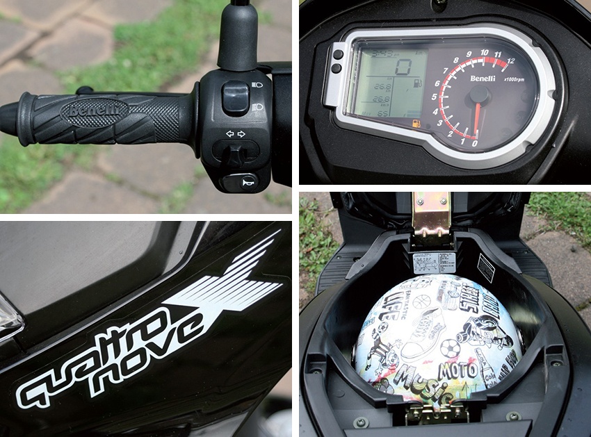 Wie Laverda, Moto Morini oder Malaguti zählt auch Benelli zu jenen klangvollen italienischen Zweirad- Herstellern, die auf eine wechselvolle Geschichte zurück blicken können. Seit 2005 gehört Benelli dem chinesischen Zweirad-Produzenten Qianjiang, der z.B. auch die Rollermarke Keeway betreibt. Bei Benelli standen zwar immer Big Bikes im Vordergrund, aber einige Roller werden ebenfalls angeboten. So zum Beispiel der Sport-Fünfziger 49X. Die italienischen Gene merkt man ihm beim Design immer noch an. Vor allem die Front mit den beiden zusammenlaufenden Scheinwerfern stechen aus dem sonst üblichen China- Einerlei hervor. Schick ist auch das Heck mit der sich zum Ende hin verjüngenden Sitzbank. Ansonsten besitzt der 49X die üblichen Insignien eines Sport-Fuffis wie die entsprechende Auspuffanlage, Wave-Scheibenbremsen vorne und hinten, ausklappbare Sozius- Fußrasten, abschließbarer Sport-Tankverschluss und ein einstellbares, einzelnes Federbein mit rot lackierter Feder. Gelungen sind zudem die Rückspiegel, die einen ausreichenden Blick auf den nachfolgenden Verkehr zulassen. Zentrale Anzeige im Cockpit ist der analoge Drehzahlmesser, dessen roter Bereich bei drehfreudigen 10000/min beginnt. Etwas schwach ablesbar sind dagegen die Hinweise im Digitaldisplay. Sehr erfreulich ist trotz der kompakten Bauweise der vorzeigbare Stauraum unter der Sitzbank, der sogar einen Integralhelm aufnimmt, komplettiert von zwei kleinen Staufächern in der Frontverkeidung.