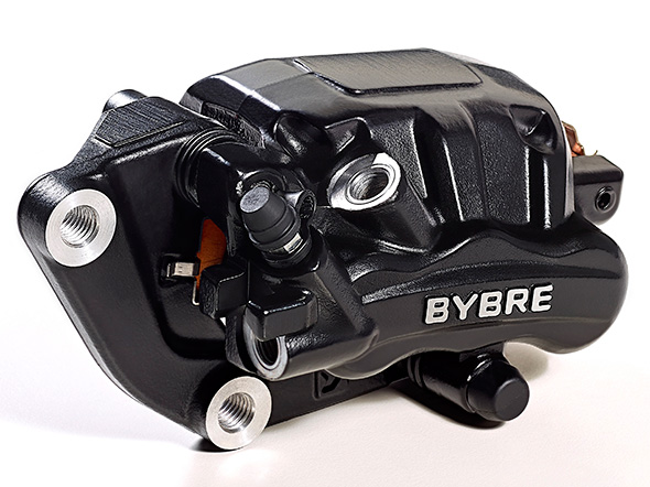 Der italienische Bremsenspezialist Brembo entwickelt und fertigt bereits seit 2010 in Indien Bremsanlagen für Scooter und Motorräder bis zu 600 cm3 unter dem Markennamen BYBRE (steh für by Brembo). Jetzt hat der indische Ableger eine neue, kombinierte Bremsanlage für Roller entwickelt, die auch ungeübten Fahrern mehr Sicherheit bietet durch kürzere Bremswege, die durch optimale Verteilung der Bremskraft auf Vorder- und Hinterrad zustande kommen. Hintergrund ist die ab 2016 in Kraft tretende EU-Bestimmung, nach der alle ab dann neu produzierten Scooter und Motorräder entweder ein ABS oder eine Kombibremse aufweisen müssen. Das gilt nicht für bereits existierende Modelle, hier gilt Bestandsschutz. Das BYBRE-System besteht am Vorderrad aus einem 3-Kolben-Schwimmsattel dessen mittlerer Kolben von einem hinteren Hauptbremszylinder angesteuert wird. Die beiden äußeren Kolben werden wie üblich von einem vorderen Hauptbremszylinder aktiviert. Ein Spezialventil, das zwischen dem hinteren Hauptbremszylinder und dem vorderen Bremssattel angeordnet ist, bestimmt die Druckverteilung zwischen vorderem und hinterem Bremssattel. Es sorgt dafür, dass das Hinterrad bei Betätigen des Bremspedals immer vor dem Vorderrad blockiert. Damit ergibt sich eine deutlich bessere Bremsleistung als bei einer herkömmlichen Bremsanlage. Das ist gerade für weniger erfahrene Fahrer wichtig, die bei rutschigem Straßenbelag die Vorderbremse nicht gerne voll einsetzen. Mit dem neuen System treten die Italiener in Konkurrenz zu Bosch und Conti, die bereits solche Systeme im Programm haben. Der dann größere Wettbewerb dürfte auf längere Sicht zu weiter fallenden Preisen auf diesem Sektor führen.