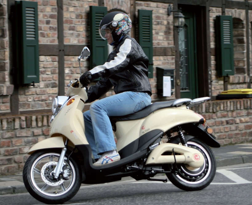 Kein Zweiradsegment ist in solcher Bewegung wie das der E-Scooter. Kontinuierliche Weiterentwicklungen, Verbesserungen und Neueinführungen sind daher die Regel. Von allem ein bißchen findet sich beim überarbeiteten Novi von Emco, der sich mit klassischen Stilelementen an die Traditionalisten unter den modernen E-Rollerfreunden wendet. Die Neuheit beim Novi ist jedoch nicht von außen erkennbar, dazu bedarf es einer über das separate Schloss am Heck geöffneten Sitzbank: Im bekannten Batterieschacht befinden sich nämlich zwei baugleiche Akkus nebeneinander. Die grünen, wie Benzinkanister anmutenden Batterien wiegen jeweils zehn Kilo und lassen sich nach Abnahme des Steckers ohne weitere Arbeiten herausnehmen – beispielsweise zur Ladung an einer herkömmlichen Haushaltssteckdose. Das ist besonders praktisch für Menschen ohne Garage oder geeigneten Abstellraum. Doch auch eingebaut können die Stromspeicher über die Bordsteckdose mit Saft versorgt werden. Serienmäßig ist übrigens nur eine Batterie – jede weitere kostet 750 Euro.
