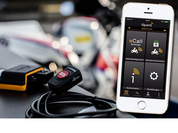 Der renommierte sächsische Automotive-Zulieferbetrieb Digades hat weltweit das erste E-Call-System mit integriertem Diebstahlschutz für Zweiräder vorgestellt. Das automatische Notrufsystem namens „dguard“ eignet sich für alle gängigen Marken sowie -typen und kann einfach und unkompliziert nachgerüstet werden. Es erkennt dank ausgeklügelter Sensorik zuverlässig einen Unfall und setzt innerhalb von wenigen Sekunden automatisch einen Notruf an die Rettungsleitstelle ab. Diese hört dann eine gesprochene Nachricht in der jeweiligen Landessprache mit den exakten GPS-Koordinaten des Unfalls. Kann der gestürzte Fahrer noch sprechen und ist das dguard per Bluetooth-Headset verbunden, kann die Rettungsleitstelle auch direkt mit ihm Kontakt aufnehmen.