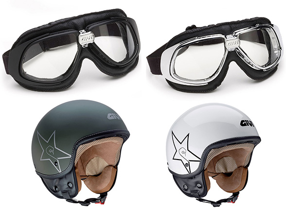 Um den passenden Schutz für die Augen braucht sich der Interessent nicht weiter umsehen, denn auch hat Givi die passenden Artikel parat: Mit den beiden Retrobrillen 1400M und 1400S sieht die Nostalgie noch schicker aus. Die stilechten Brillen für Retro- und Chopperfahrer kommen mit transparenten Linsen und natürlich CE-Genehmigung, die S kommt mit einem silbernen Rahmen, die M ist in schwarz gehalten. Beide Modelle kosten jeweils 35,50 Euro.