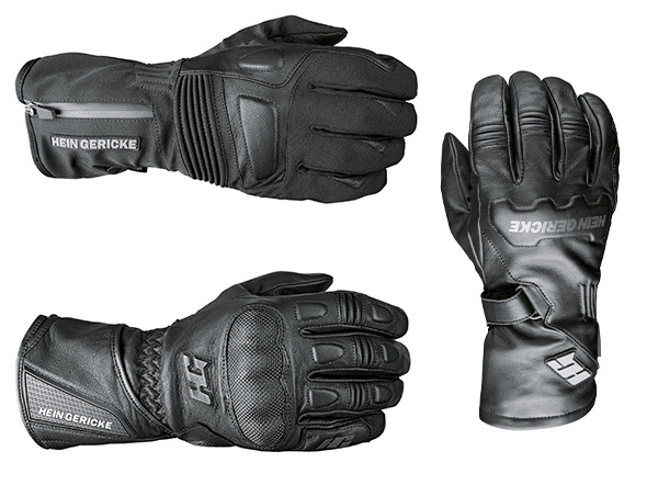 Glan, Sill und Pram sind die nicht ganz eingängigen Namen der neuen wasserdichten Sheltex Pro Handschuhe von Hein Gericke. Dabei werden die Membran-Inserts, also die Innenhandschuhe, speziell den Hein Gericke Passformen angepasst. Ein besonders dünner wasserfester Wabenkleber auf der Innenhand und in der gesamten Stulpe sorgt für ein griffechtes, direktes Gefühl. Wasserabweisendes Leder verhindert die Feuchtigkeitsaufnahme, wodurch der Handschuh leicht bleibt und Kältebrücken vermieden werden. Als weiteres Ausstattungsmerkmal ist in das Futter der Fingerlinge ein Silberfaden eingearbeitet, der als wirksamer Bakterien- und Geruchskiller fungiert. Alle drei Modelle verfügen über einen Visierwischer aus Gummi mit drei Lamellen auf der linken Hand.