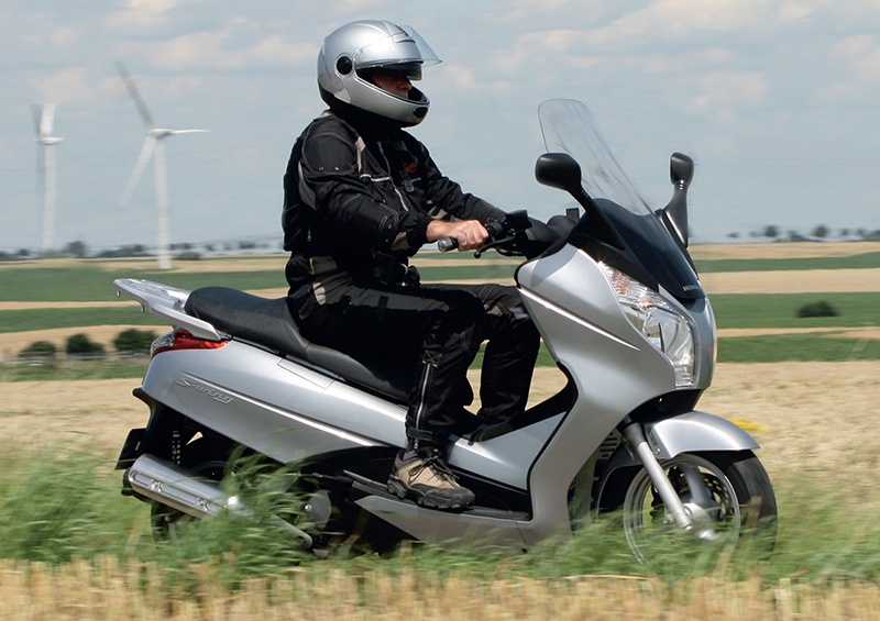 Wer sich von Äußerlichkeiten nicht so leicht abschrecken lässt, der findet in dem nun schon gut sechs Jahre alten Modell einen verlässlichen Partner, dessen solide Antriebstechnik zwar nicht mehr die modernste ist, dafür aber bewährt. Immerhin hat Honda in den ganzen Jahren technisch so gut wie nichts geändert, was für ihn und seine ausgereifte Konstruktion spricht. Bereits in seinem Vorgängermodell, dem Panthéon war der Zweiventil-Einzylinder mit einer oben-liegenden Nockenwelle verbaut und mit einem vollständig computergesteuerten PGM-FI-Kraftstoffeinspritzsystem ausgestattet. Damals noch mit Euro 2-Norm unterwegs, übersprang er mit Lambdasonde und geregeltem Dreiwege-Kat als S-Wing von Beginn an locker die Euro-3-Hürde. Mehr noch: Der sauber abgestimmte Motor geht so sparsam mit dem sündhaft teueren Kraftstoff um, dass er trotz kleinem, nur 9,4 Liter fassenden Kraftstofftank über 250 Kilometer Reichweite erzielt.