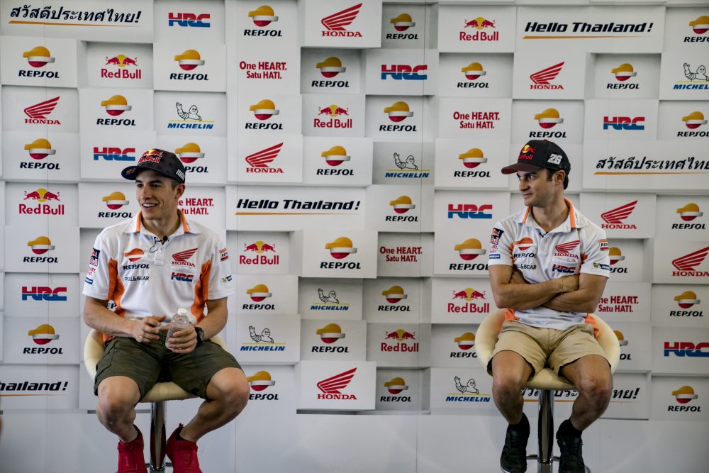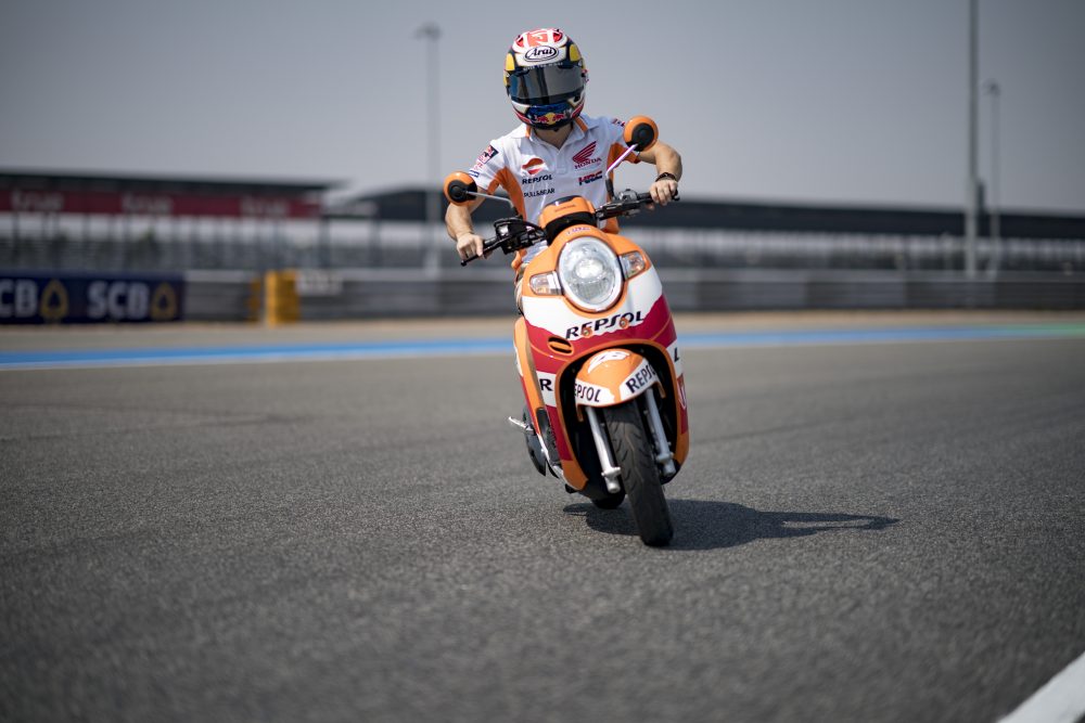 Während sie darauf warteten, dass ihre RC213V Rennmaschinen für den zweiten Wintertest auf Thailands Buriram International Circuit einsatzfähig gemacht wurden, nutzen die beiden Repsol Honda Werksfahrer Marc Marquez und Dani Pedrosa die Gelegenheit, an Bord eines Honda Scoopy ein paar Runden auf der Strecke zu drehen. Auf der von Hermann Tilke entworfenen, rund 400 Kilometern nordöstlich von Bangkok gelegene Rennstrecke, wird drei Tage lang getestet. Später in der Saison, am 5. und 7. Oktober, wird der MotoGP auf der nur 4,6 Kilometer langen Bahn sein Debüt in Thailand geben.