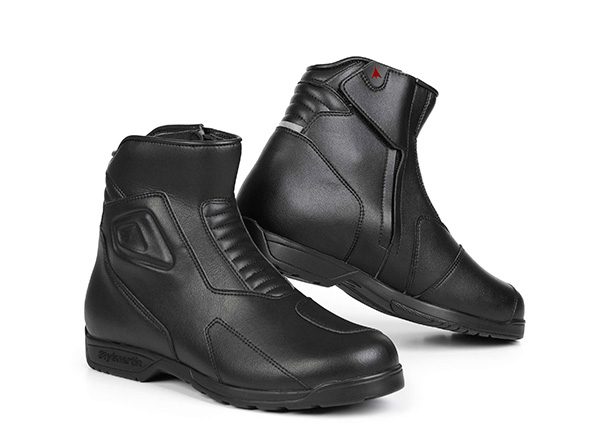 Wie der kurze Tourenstiefel Shiver Low, der aus wasserabweisendem Microfiber-Leder gefertigt ist und mit einer innenliegenden Klimamembran den Feuchtigkeitshaushalt reguliert. Zur zweckmäßigen Sicherheitsausstattung gehören Schalt-, Fersen- und Zehenverstärkungen sowie Knöchelprotektoren aus PU an beiden Seiten. Der Reißverschluss wird von einer Klettlasche abgedeckt, dazu trägt der Kurzstiefel das CE-Zertifikat als Schutzausrüstung. Der Stylmartin Shiver Low ist in den Größen 38 bis 47 zum Preis von 149 Euro erhältlich.