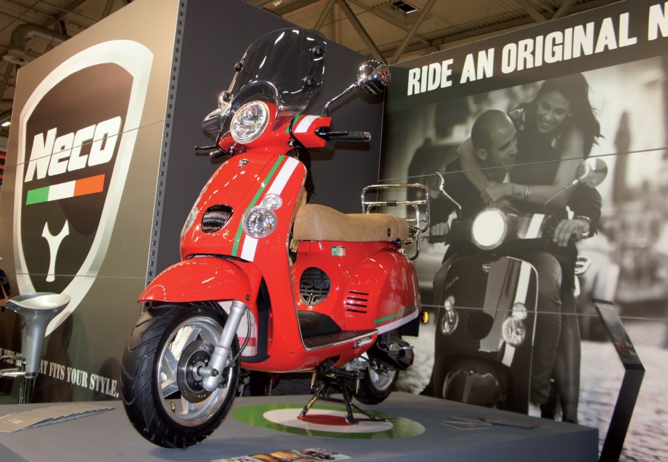 Vor zwei Jahren tauchten die Roller der Marke Neco erstmals auf der EICMA in Mailand auf. In Italien, Frankreich, England und Belgien gibt es inzwischen auch schon Importeure der in China gefertigten und im Stil klassischer Vespas gehaltenen Roller. Auf der Intermot suchten die Italiener nun deutsche Händler für ihre Modelle wie die im 60er-Jahre- Look daher kommende Abruzzi mit 50er- und 125er- Viertaktmotor, Automatikgetriebe und Plastikverkleidung. Wie die Kopie einer Vespa LX sieht das Modell Agira aus, und die Lola 50 könnte man fast für eine Lambretta halten. Die Motoren leisten zwischen drei PS bei den Fünfzigern und 8,4 PS bei den 125ern, sind durchgängig luftgekühlt und Vergaser sorgen für die Spritversorgung. Bei Preisen von 1800 Euro für eine Abruzzi 50 oder 1200 Euro für eine Lola 50 sollte man nicht unbedingt höchste Qualitätsansprüche anlegen, aber einen Blick darf man ruhig auf die schicken Kopien werfen.