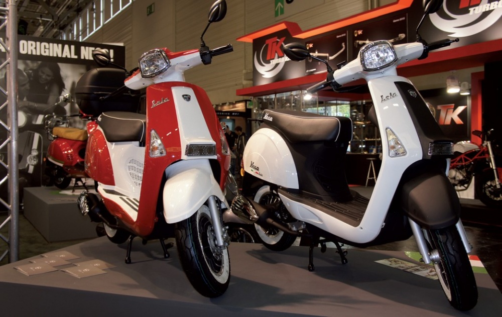 Vor zwei Jahren tauchten die Roller der Marke Neco erstmals auf der EICMA in Mailand auf. In Italien, Frankreich, England und Belgien gibt es inzwischen auch schon Importeure der in China gefertigten und im Stil klassischer Vespas gehaltenen Roller. Auf der Intermot suchten die Italiener nun deutsche Händler für ihre Modelle wie die im 60er-Jahre- Look daher kommende Abruzzi mit 50er- und 125er- Viertaktmotor, Automatikgetriebe und Plastikverkleidung. Wie die Kopie einer Vespa LX sieht das Modell Agira aus, und die Lola 50 könnte man fast für eine Lambretta halten. Die Motoren leisten zwischen drei PS bei den Fünfzigern und 8,4 PS bei den 125ern, sind durchgängig luftgekühlt und Vergaser sorgen für die Spritversorgung. Bei Preisen von 1800 Euro für eine Abruzzi 50 oder 1200 Euro für eine Lola 50 sollte man nicht unbedingt höchste Qualitätsansprüche anlegen, aber einen Blick darf man ruhig auf die schicken Kopien werfen.