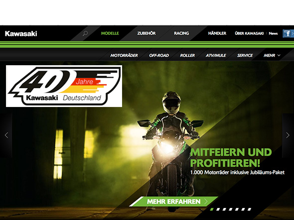 Das Jubiläums-Paket gilt für 1.000 neue Straßenmotorräder (außer Ninja H2) oder Roller von Kawasaki, die im Aktionszeitraum vom 01.08.2015 bis 31.10.2015 bestellt und an den Kunden übergeben werden, nur solange der Vorrat reicht und nur bei teilnehmenden Kawasaki-Vertragspartnern in Deutschland.