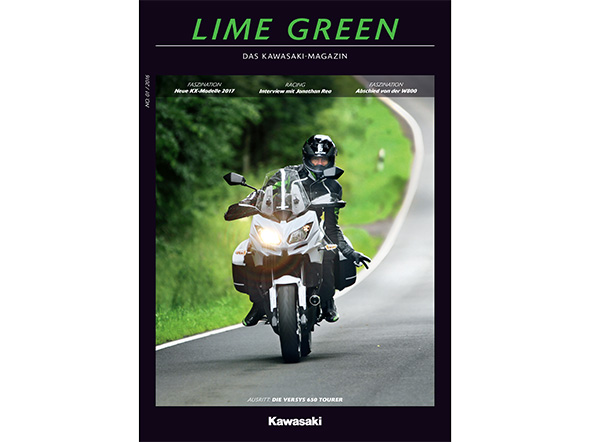 Unter dem Titel „Lime Green“ legt Kawasaki Deutschland ein neues Printmagazin als kostenloses Kundenblatt auf. Neben Berichten über neue Kawasaki-Modelle wird es im Magazin immer die aktuellsten Informationen rund um die grüne Marke geben, die erste Ausgabe liegt schon bei jedem Kawasaki-Händler abholbereit.