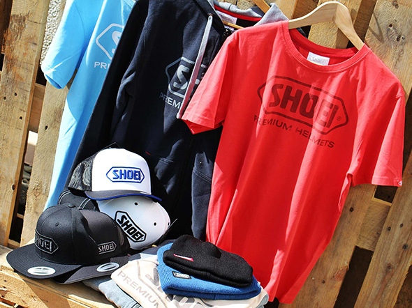 Gemäß der Shoei-Helmqualität sollen sich die Freizeitartikel durch erstklassige Materialien und Details von der Menge abheben. So gibt es im Fachhandel verschiedene T-Shirts (29,95 Euro), Zipped Hoodies (69,90 EUR), Beanies (29,95 Euro) und Caps (29,95 Euro).