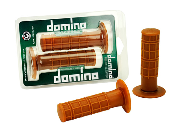 Vom italienischen Spezialisten Domino Tomaselli kommen ebenso formschöne wie farbig stilechte Lenkergriffe für Vintage-Scooter und Bikes. Der Neuzugang im italienischen Portofeuille mit der Bestellnummer 1131.82.75.06-0 zeigt eine klassische braune Gummi-Optik, wie sie in den Sechziger bis Achtziger Jahren und sogar noch später auf den angesagtesten Scootern zu finden waren. Als Ersatz für die heute ziemlich rissigen Gummis von damals bieten sich die Edelteile ebenso an wie als stilechte Ausstattung aktueller Retroscoots.