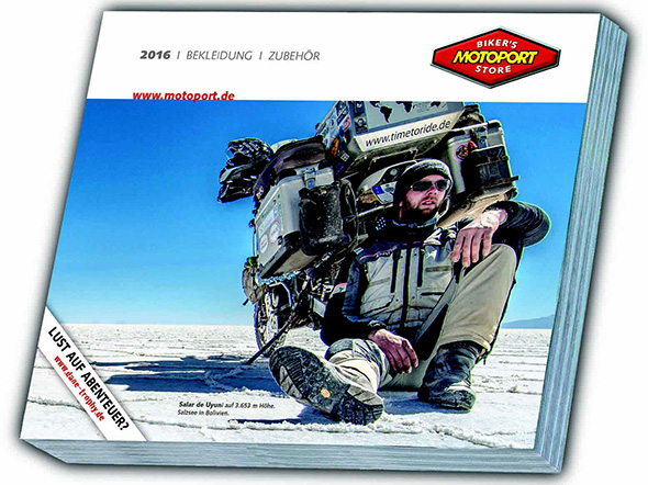 Ende Januar wird der neue MotoPort-Katalog 2016 erscheinen. Auf 288 Seiten breitet der norddeutsche Bekleidungsspezialist den gesamten Inhalt mit Helmen, Leder- und Textilbekleidung, Stiefeln, Handschuhen, Gepäcklösungen, Bekleidungszubehör wie Windmasken etc, Faltgaragen, Pflegemittel und Protektoren großzügig aus. Dazu gibt’s ein Händlerverzeichnis, damit der geneigte Interessent die ausgewählten Artikel auch in natura anprobieren und im Falle des Gefallens gleich erstehen kann. Der Katalog für die angeschlossenen MotoPort-Händler kommt mit einer großzügigen, bildlastigen und emotionalen Darstellung der Produkte, was beim Durchblättern für Freude am Motorradfahren und an der Motorradbekleidung sorgen soll.