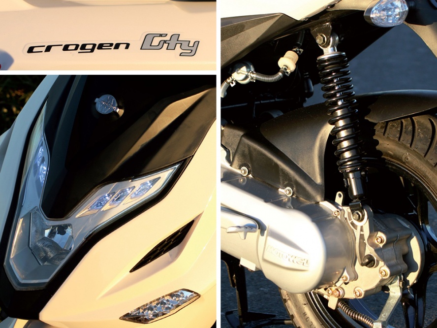 Auch wenn der Crogen City eher ein Stadtbewohner ist, so besitzt er doch eine ganze Menge sportliche Attitüden wie das steile Heck, die LED-Leuchten und den markanten Schalldämpfer. Das hintere Federbein ist einstellbar.