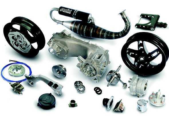 Polini, der bekannte italienische Zubehörspezialist, bringt den ersten kompletten P.R.E. Scootermotor an den Start. Passend für Piaggio ZIP SP, gibt es den Antrieb für den Zehnzöller in zwei Versionen: Als 70-Kubik-Satz mit einem Bohrung-Hubverhältnis von 47,6 x 39,3 cm und als kraftvollen 100-cm3-Antrieb, dessen Hubraum durch jeweils 50 cm Hub und Bohrung erreicht wird. Leichtmetall-Kurbelgehäuse, handgefertigte Schalldämpfer, größere Kurbelwellenlager und viele weitere hochwertige Schmankerln kennzeichnen das Renn-Aggregat. Der Zylinderkopf entspricht exakt demjenigen aus dem 125er-GP-Bike mit sechs Verschraubungen und der Möglichkeit, eine elektrische Wasserpumpe anzubringen.