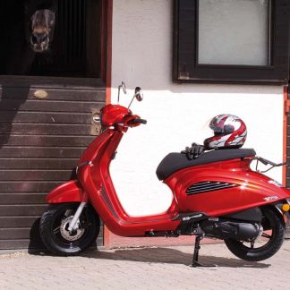 ZÜNDAPP BELLA 50 R Nach der Bella 125 R ist jetzt auch die ersehnte 50er-Variente mit Euro4 lieferbar. Wir fuhren eines der ersten Retro-Modelle, das frisch von den Produktionsbändern in China beim deutschen Importeur Karcher eingetroffen war.