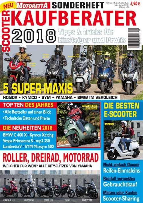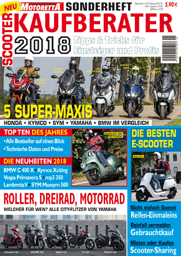 Benötigen Sie Unterstützung bei der Wahl des richtigen Rollers? Wollen Sie wissen, welcher Roller zu Ihnen am besten passt? Egal, ob Einsteiger oder erfahrener Roller-Fan, mit dem Scooter-Kaufberater bietet Ihnen die erfahrene Motoretta-Redaktion einen umfassenden Überblick über den aktuellen Roller-Markt. Auf der Suche nach dem richtigen Maxi-Scooter dürfte der große Vergleich zwischen Yamaha TMAX, Kymco, AK 550, Honda X-ADV, SYM Maxsym 600 und dem BMW C 650 GT sicher hilfreich sein. Darüber hinaus werden die Top-Ten-Modelle des Jahres mit allen technischen Daten vorgestellt, genauso wie die besten E-Scooter von NIU bis Schwalbe. Und wenn Sie sich noch nicht entscheiden konnten, ob es nun ein Roller, ein Dreirad oder doch ein Motorrad sein soll, auch hier leistet der Scooter-Kaufberater Hilfestellung bei der Qual der Wahl.