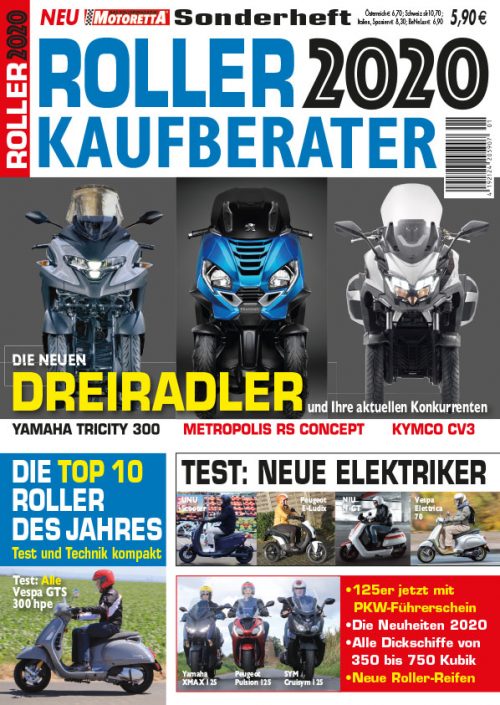 Jetzt auch als e-Paper Download: Der Scooter Kaufberater ist das Standardwerk für alle Rollerfahrer, die sich einen neuen oder gebrauchten Roller zulegen wollen oder mit dem Gedanken spielen, ihren alten Roller gegen einen neuen einzutauschen. Der Kaufberater verschafft einen kompletten Überblick über den Roller-Markt 2020. Er gibt jede Menge Tipps, welcher Roller sich für welchen Einsatzzweck am besten eignet und welcher Roller zu welchem Fahrer am besten passt. Schwerpunkt sind die neuen Dreirad-Roller von Yamaha, Kymco und Metropolis. Außerdem befasst sich die Ausgabe ausführlich mit der neuen Vespa GTS 300 hpe und deren Modellvarianten. Zudem klärt der Kaufberater über die wichtigsten Neuheiten 2020 auf. Entscheidungshilfe bringt ein Konzeptvergleich der 400er-Klasse mit den aktuellen Rollern von Kymco, Yamaha, BMW, Suzuki und SYM. Weitere Test-Themen sind: die Maxi-Klasse über 400 Kubik inklusive dem neuen TMAX 560 von Yamaha, E-Scooter und ein Vergleich der aktuellen 125er-Modelle Peugeot Pulsion, Yamaha XMAX, SYM Cruisym, Vespa Sprint und Lambretta V-Special. Ein aufschlussreicher Auspufftest sowie Technik-Themen über Reifen und den Einsatz von Konnektivität-Systemen komplettieren dieses Motoretta Sonderheft zum Beginn der neuen Roller-Saison.