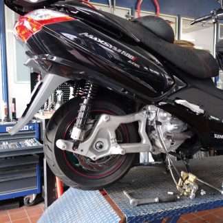 Nach mehr als 12.000 Kilometern und anderthalb Jahren Dienst in der Motoretta-Redaktion haben wir unseren braven SYM Maxsym 600 vom harten Dauertest-Leben erlöst. Den Gnadenschuss in Form der kompletten Demontage bei der deutschen Niederlassung des Taiwaners hatte er sich verdient.