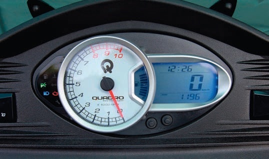 Weitere wichtige Änderungen betreffen den Sitz mit Gel-Einsätzen, das neu gestaltete Cockpit sowie das Windschild und die Beifahrer-Haltegriffe. Der Quadro 350S, der in Italien und Frankreich bereits eingeführt wurde, bietet jetzt weniger Gewicht, mehr Leistung, mehr Komfort und noch mehr Fahrstabilität. In Deutschland soll er ab 2014 erhältlich sein.