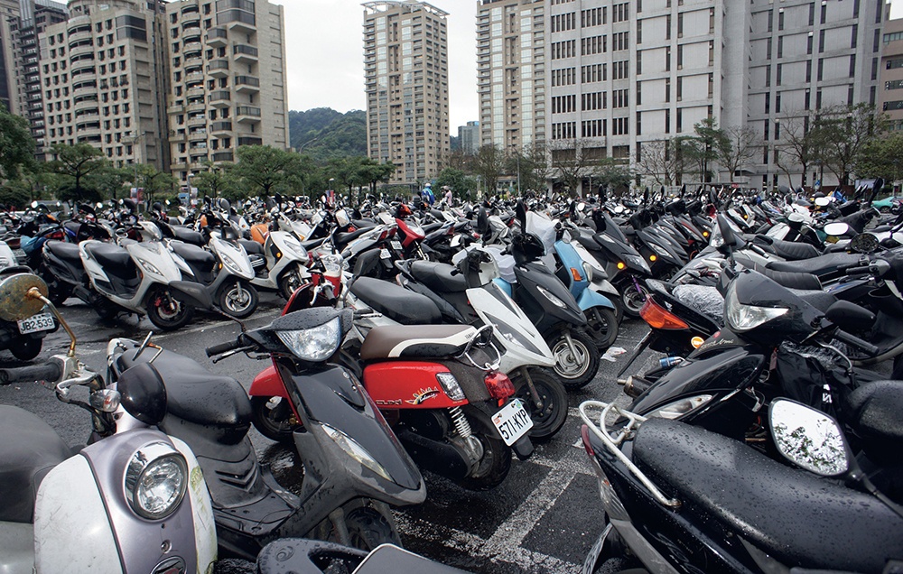Im Taipei-Tower „101”, mit 508 Metern lange Zeit das höchste Gebäude der Welt, gibt es eine Parkhaus für circa 1000 Pkw. Das ist nichts Besonderes, Besonders sind dagegen die knapp 3000 Parkplätze für Roller. Ja, in Taipei gibt es eigene Tiefgaragen für Scooter, mit mehreren Stockwerken unter der Erde. Aber auch ebenerdig besetzen die Stadtflitzer selbst die kleinste freie Fläche am Straßenrand, vor Geschäften, unter den Einkaufsarkaden und natürlich auf den regulären Roller-Parkplätzen. Eigentlich ist Taipei ein einziger Scooter-Abstellplatz, schließlich müssen die nahezu eine Million Roller, die täglich in Taipei unterwegs sind, irgendwo bleiben. Es gibt sogar Behindertenparkplätze für die zahlreichen dreirädrigen Scooter, die meistens von älteren Menschen gefahren werden. Der Roller ist das wichtigste Verkehrsmittel für alle Bevölkerungsgruppen, jede Erledigung wird mit dem Roller absolviert. Autos sind für die meisten Taiwaner ein Luxus-Artikel, den sie sich nicht leisten können, ein 125er-Roller kostet dagegen etwa 700 bis 800 Euro.