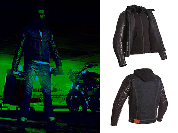 Die hierzulande völlig zu unrecht noch unbekannte französische Bekleidungsmarke Segura versteht sich auf ausgefallene Designs mit innovativem Materialmix. Davon legt die Jacke Veloce eindeutiges Zeugnis ab, denn das im Blousonstil geschneiderte Oberteil kommt mit Ärmeln aus hochwertigem Leder, während die Hauptpartie aus wasserdichtem Denimstoff (=Jeans) gefertigt ist. Den cleveren Mix komplett macht ein in die Jacke gezipptes Kapuzensweat-Innenfutter. Natürlich gehören CE-gemäße Protektoren an Ellbogen und Schultern serienmäßig dazu – auch wenn sie kaum zu sehen sind –, eine Tasche für den optionalen Rückenprotektor macht die Sicherheitsausstattung komplett. Mit 359,90 Euro ist die in den Größen S bis XXXL aufwendig produzierte Jacke nicht zu teuer ausgepreist.