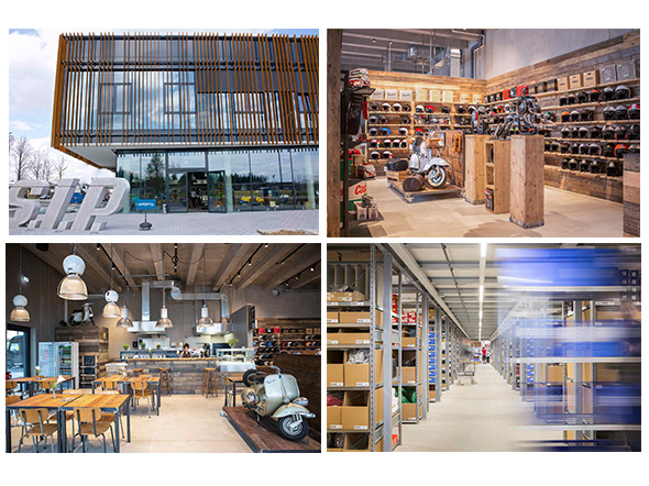 Italophil ist noch das kleinste Attribut, welches die Landsberger SIP Scootershop GmbH für sich in Anspruch nehmen darf. Neuer Meilenstein in der Unternehmensentwicklung ist der Bezug des neuen Logistik- und Verwaltungsgebäude in der Marie-Curie-Str. 4 in Landsberg am Lech. Dort stehen den knapp 100 Mitarbeiter knapp 7.000 m2 Lagerfläche als Hochregallager und Kleinteilelager zur Verfügung. Damit können die zirka 1000 Bestellungen täglich bewältigt werden.