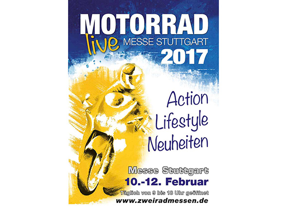 Zum Saisonstart 2017 bekommt Stuttgart eine eigene Zweirad-Frühjahrsmesse. Vom 10. bis 12. Februar 2017 treffen sich die Zweiradfans in der Stuttgarter Messe in unmittelbarer Nachbarschaft zum Flughafen, um die Neuheiten der Saison und ein vielseitiges Show- und Actionprogramm zu erleben.