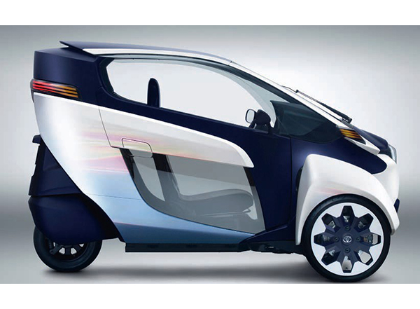 Er hat zwei Räder vorne und eines hinten, genauso wie die mp3s, Metropolis und Co. im Rollerbereich. Beim Toyota i-Road sitzt der Fahrer allerdings nicht auf, sondern überdacht im Fahrzeug. Und angetrieben wird der 1,45 Meter hohe Dreiradler nicht von einem herkömmlichen Verbrennungsmotor, sondern von Radnaben-Elektromotoren mit jeweils zwei kW an den beiden Vorderrädern. Sie sichern eine zügige und nahezu lautlose Beschleunigung. Ist die Lithium-Ionen-Batterie aufgeladen, fährt das Elektro-Dreirad völlig emissionsfrei bis zu 50 Kilometer weit. Der Akku lässt sich an jeder haushaltsüblichen Steckdose in nur drei Stunden aufladen. Im Gegensatz zu Zweirädern muss der Fahrer des i-Road bei geringen Geschwindigkeiten oder im Stand nicht selbstständig mit den Füßen stabilisieren. Um die Balance zu halten, nutzt das System einen Stellmotor und ein Getriebe an der Vorderradaufhängung, das mit dem rechten und linken Vorderrad verbunden ist. Ein elektronisches Steuergerät berechnet die erforderliche Neigung, basierend auf Lenkwinkel und Fahrzeuggeschwindigkeit. In Tokio kann das nur 87 Zentimeter breite Gefährt bereits im Rahmen eines Car-Sharing-Programms ausprobiert werden. Ob das Dreirad nach Deutschland kommt, ist noch unklar.