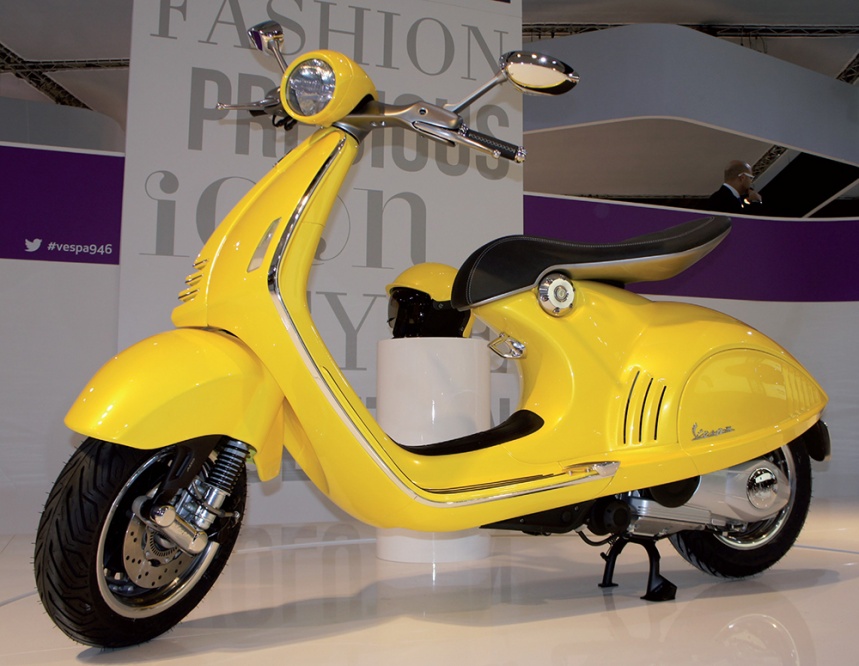 Wohl kaum ein anderer Roller hat in der letzten Zeit eine deratige Vorfreude ausgelöst wie die Vespa 946. In Mailand auf der Eicma 2011 als reine Studie erstmals präsentiert, war die Spannung groß, wie die neue Vespa denn in der Realität aussehen würde. Piaggio-Chef Roberto Colaninno hatte höchstpersönlich den Auftrag erteilt, die filigrane Studie zur Serienreife zu entwickeln. Die Kombination aus klassischer Optik der ersten Vespa von 1946 mit modernen- Stilelementen und hochwertigen Bauteilen machte von Anfang an den Reiz des zunächst Vespa 46 getauften und dann in 946 umbenannten Rollers aus.