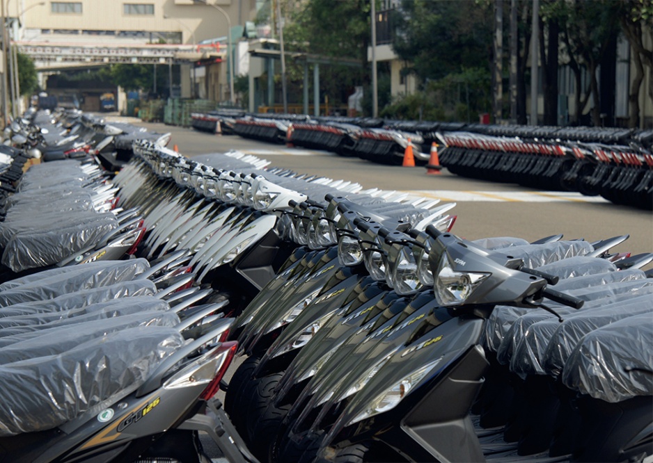 Nach zwölf Stunden Flug lande ich in Taipei, Hauptstadt der Republik China, bekannt auch als Taiwan. Viel hatte ich vorher gehört über das Land und die Bedeutung des Rollers als wichtigstes Verkehrsmittel. Knapp 20 Millionen Scooter soll es auf der Insel geben, fast soviele wie Einwohner. Jährlich kommen 600000 Fahrzeuge hinzu, überwiegend aus der Produktion der beiden größten Rollermarken im Land: Kymco und SYM. Eine knappe Autostunde vom Flughafen entfernt liegt im Hsinchu County das Stammwerk von Sanyang. Hier im Norden der Insel konzentriert sich das wirtschaftliche Leben. Hightech-Unternehmen wie Acer und Asus produzieren hier, Elektronikkonzerne wie Foxconn und HTC stammen aus Taiwan. Das Gelände von Sanyang, auf dem die SYM-Roller vom Band laufen, fällt fast gar nicht auf, es liegt mitten in einem Stadtviertel. Der Wachmann an der Schranke zur Fabrik steht stramm, als wir auf das Gelände fahren. Jetzt erst fallen die Massen von Rollern auf, die in Reih und Glied zu Tausenden im Freien stehen. Lediglich die Sitzbänke schützt eine Plastikhaube vor Wind und Wetter. Bei SYM ist gerade Arbeitsbeginn, eine Sirene erklingt und draußen vor dem Hauptgebäude versammeln sich die Mitarbeiter zur Morgengymnastik. Ein Vorturner macht die Übungen vor, die Belegschaft biegt, dehnt und dreht sich, bis auch der letzte müde Knochen geschmiert ist. Das sei üblich, es fördere die Gemeinschaft und mache fit für die anstehende Arbeit.