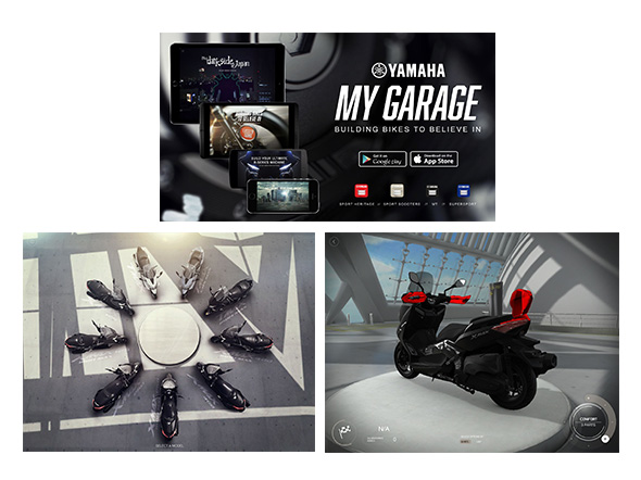 Durch die My Garage-App kann jeder in die virtueller Welt der Yamaha Sportroller eintauchen und seinen eigenen TMAX oder X-MAX 400/250/125 mit Yamaha Originalzubehör zusammenstellen. So muss man sich nicht mehr vorstellen, wie verschiedene Kombinationen von Yamaha Originalzubehör aussehen würden – so kann man jetzt in Echtzeit auf dem Bildschirm beobachten, wie der individuelle Roller mit Zubehör Formen annimmt. Die Highend-3D-Gestaltungsfunktion erlaubt es, den Roller aus jeder Perspektive anzusehen und sogar Fotos kann man damit machen, um sie an Freunde zu schicken. Spielend leicht lassen sich Farben ändern, verschiedene Teile hinzufügen oder entfernen und sogar die Gesamtpreise vergleichen.